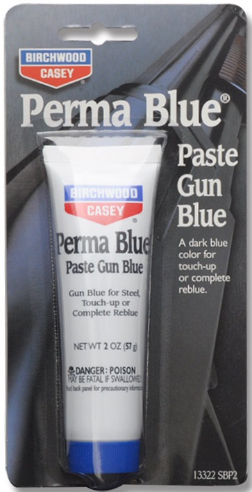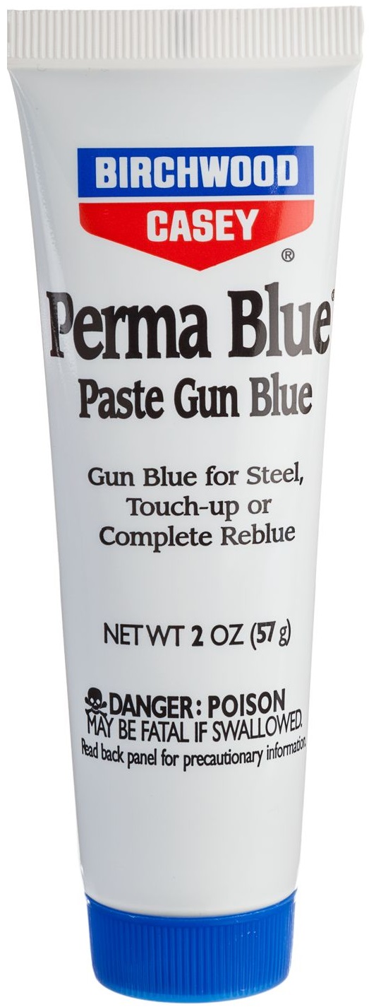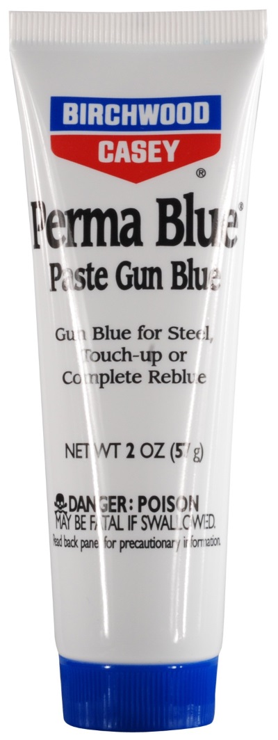 The longest-lasting finish, but slower to darken than the liquid blues. Easy-to-use Perma Blue® Paste Gun Blue reacts slowly with the metal but builds up a denser finish that will outlast the liquid blues. Excellent for touch-up or complete reblueing. Metal must be clean and free of rust to enhance and protect the finish. A dark blue colour may require three or more applications of Perma Blue® Paste, but each coat takes only 30 to 60 seconds to work. Apply with cotton swab. Complete instructions on each tube. |