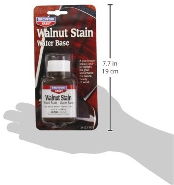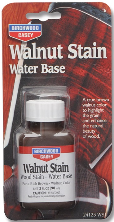 The Birchwood Casey® Walnut Wood Stain is a water-soluble stain that is sun-fast, true-to-colour and non-bleeding. Produces a clear, rich walnut colour without grain clouding or smearing. Walnut Stain is a true, brown-walnut colour for the traditional look. A fine stain for gun stocks and custom wood projects. Walnut Stain highlights the grain and enhances the natural beauty of fine woods. Colour intensity is easily controlled by adding water to concentrate or using full strength for light coloured woods such as birch. Easy to apply with lint-free cloth or brush.