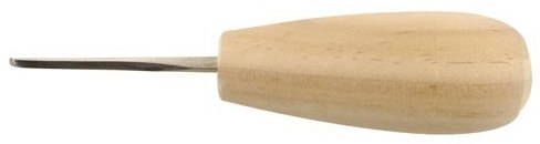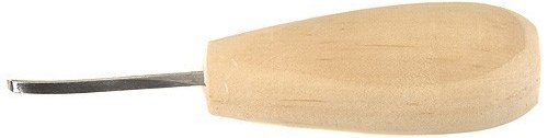 Short, compact veiner puts you closer to your work for firm, no-slip control and all-angle maneuverability when making curved lines, fleur-de-lis or any border work. Perfect for diamond cleanup at border junctions. Tool-steel, V-shaped shaft is curved upward to increase cutting efficiency. Takes and holds sharp edge. Palm-sized handle feels natural…in fact, we couldn't put it down until we'd carved on every piece of good scrap wood in sight! |