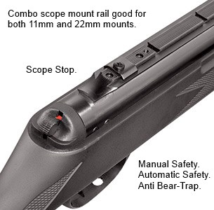 * Calibers: .177cal (4.5mm) and .22cal (5.5mm)