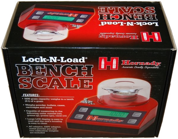 The Hornady Lock-N-Load Bench Scale is designed with performance in mind, and is a great addition to your reloading bench. The Bench Scale uses the same high quality precision load cell that is found in the Lock-N-Load Auto Charge. This scale features quick setup, large LCD display, easy to use tare function, calibration, and the ability to change units. With a 1500 grain capacity, the Bench Scale is perfect for weighing powder, bullets, cases, and cartridges. The large LCD display is easy to read and weighs precisely to one tenth (0.1) of a grain. Included are two calibration weights, AC adaptor, 220V adaptor, and metal powder pan. |