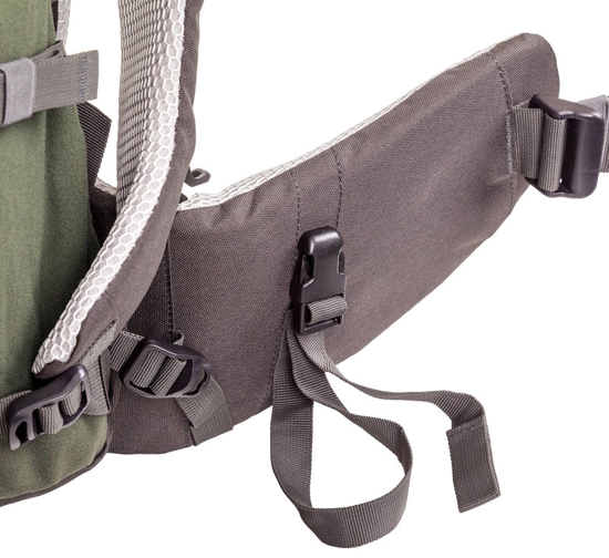 The custom adjustment, full-support Air Flow harness offers maximum comfort and weight distribution while carrying loads of all weights. The five accessory pockets allow you to separate wet jackets from the main compartment, store scopes, cameras and tripods in fast-access positions. A top-loading closure and multiple compression zip design mean you can cram in lots of gear easily and cinch everything down tight to eliminate movement inside the pack. Ice axe/walking pole attachments and Quick Click rifle scabbard allow you to attach your gear quickly and easily and the full cover Blaze orange rain cover ensures your kit stays dry in turbulent conditions. YKK Zippers and YNS Buckle hardware finish the boundary off as one of the toughest and most reliable serious hunting packs on the market.