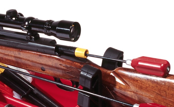 * Assures perfect alignment of a cleaning rod to the bore.