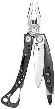 The sleek new Leatherman Skeletool CX gets you back to basics... very cool basics. The Skeletool CX has only the most necessary of multi-tool features, because sometimes that's all you need. With a 154CM stainless steel blade, pliers, bit driver, pocket clip and carabiner/bottle opener, you're set. Lightweight, low volume, perfect size. The Skeletool CX: Who says more is better?