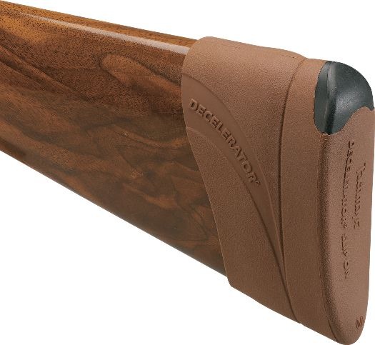 Combining the advanced recoil control of the popular Decelerator internal design and material with Pachmayr's patented insert, this great looking new slip-on recoil pad is unmatched by any other hunting pad. In addition, the pad's material and design make installation easier than ever. Best of all, all these features are offered at a price that is no more than other, less advanced pads. No other slip-on recoil pad can match all the features of Pachmayr's new Decelerator Slip-On at any price. Both black and brown models are available. No other slip on has the patented, Pachmayr Speed-Mount insert.