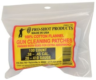 The fact is well-known that nothing surpasses Pro-Shot's Exclusive Spec American Made 100% cotton flannel fabric finished on both sides for purposes of absorbing foreign matter and residue. Pro-Shot's patches carry the fouling through the BORE with the LEAST amount of abrasive contact to the barrel's rifling.