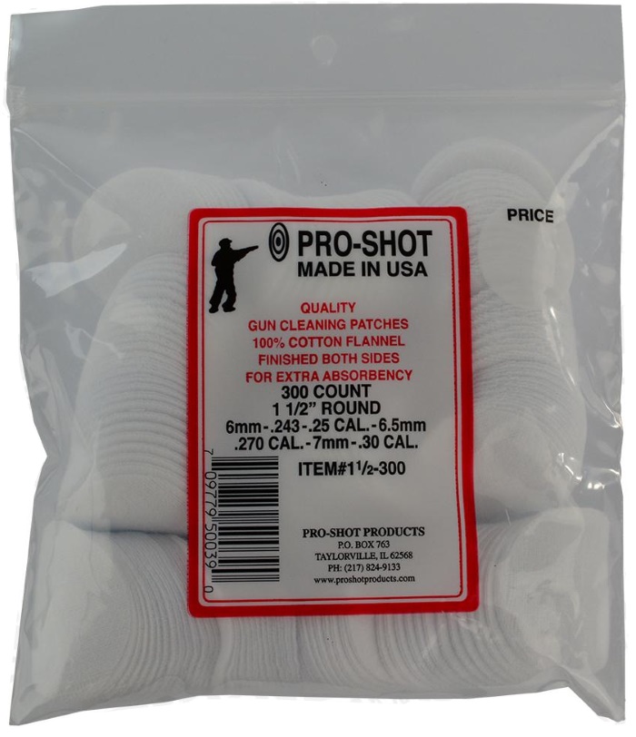 Pro-Shot 1 1/2" Round Cotton Gun Cleaning Patches: 6mm to .30 Cal 300x Bulk Pack NZ$21 (incl. GST)
