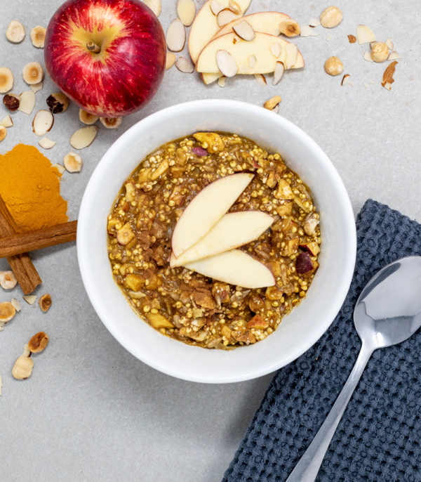 With Turmeric, this meal provides an exciting and nutritious spin on the classic comforting Apple & Cinnamon flavour we are so familiar with. This popular spice contains the phytochemical Curcumin, well known for its anti-inflammatory properties.
