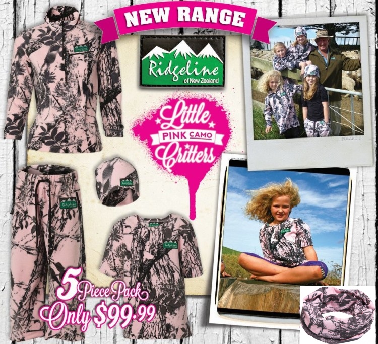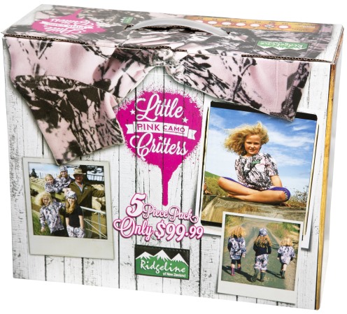 The Little Critters Packs offer great value for money and are ideal for our kids out there hunting, fishing, farming and enjoying the great outdoors. Many girls (and their mums) have been asking for their own version so, coupled with the Ridgeline team's influx of baby girls, it was time for the Pink Camo to make its debut! Cute and practical - go girls!