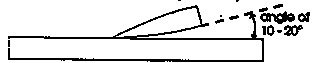 Referring to the diagram, select the grade of 'Indian' or Arkansas' stone according to the degree of coarseness of the 'sawtooth' pattern desired. Take the knife in your usual working hand, lay it at an angle of 10-20 degrees to the stone, using the fingers on your free hand to apply mild pressure to the blade.