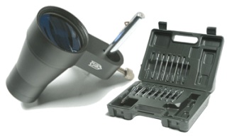 Its bright, battery-powered laser makes rapid, ultra-precise work of boresighting. Created to meet the demands of gunsmiths and serious shooters, it includes arbors for .22- through .50-caliber firearms.