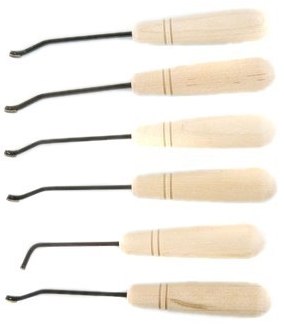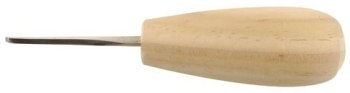 Short, compact veiner puts you closer to your work for firm, no-slip control and all-angle maneuverability when making curved lines, fleur-de-lis or any border work. Perfect for diamond cleanup at border junctions. Tool-steel, V-shaped shaft is curved upward to increase cutting efficiency. Takes and holds sharp edge. Palm-sized handle feels natural…in fact, we couldn't put it down until we'd carved on every piece of good scrap wood in sight! |