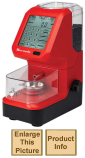 The Hornady® Auto Charge Pro provides precise, customizable powder dispensing in an easy-to-use, space-saving unit. Precise to within 0.1 grain, the Auto Charge Pro offers customizable trickle speeds for various powder types, as well as custom time settings. Store settings for up to four custom loads or use the factory setting. The backlit touch screen is easy to read, while a large knob on the side simplifies powder emptying. |