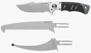 The Metolius Exchange-A-Blade features the Gerber patented easy blade swapping mechanism. It includes 3 of our most popular blades: E-Z Open, Utility Saw, and Fine Edge Drop Point.