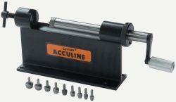 Uses standard shellholder to position the case and incorporates standard Lyman cutter heads and pilots mounted on a centerless ground shaft adjustable for depth of cut.