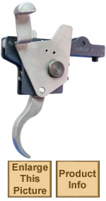 Fits same rifles as the Springfield Sportsman trigger. Light weight alloy housing. Pull weight adjusts between 1 - 3 pounds. Working surfaces are EDM machined, hardened and polished. Some stock inletting required. New for 2008 the trigger is 3/16" wide, eliminating the need to widen the trigger slot on your trigger guard. |